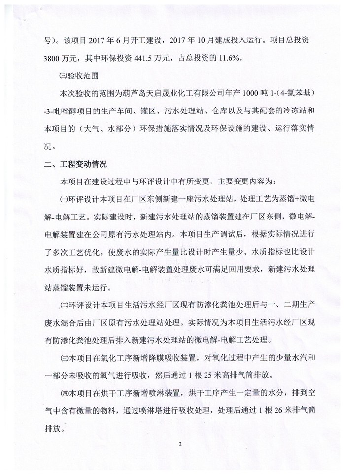 | 5000吨/年2,5-二氯苯胺部分 | 葫芦岛市环境保护局 | 2011年6月23日 | 葫环审[2011]43号 | 葫芦岛市环境保护局 | 2017年1月10号 | 葫环验[2017]2号 |